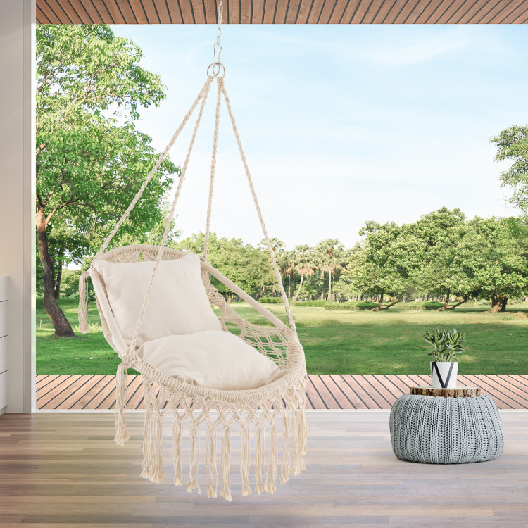Hanging Hammock Chair with Soft Seat Cushions and Sturdy Rope Chain Hanging Hammock Chair with Soft Seat Cushions and Sturdy Rope Chain Hanging Hammock Chair with Soft Seat Cushions and Sturdy Rope Chain