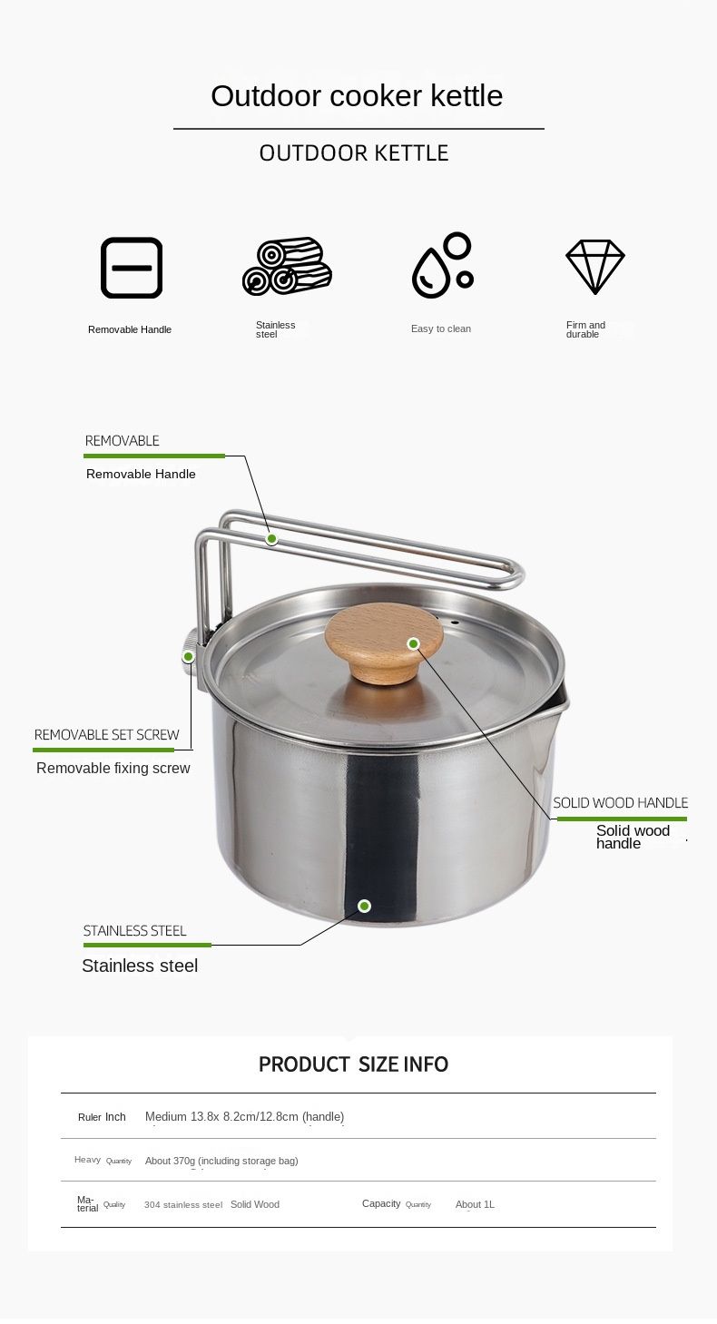 Material: pot body - 304 stainless steel / accessories - 201 stainless steel / pot lid handle - beech wood
