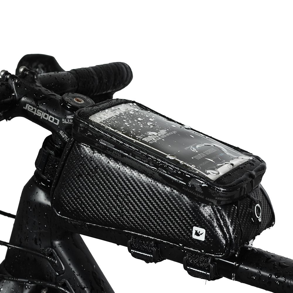 *DURABLE & WATER RESISTANT: The bike top tube bag is made of ultralight and stylish carbon fiber material with sealed double zippers closure, which ensures the water doesn't flow into the bag.The sun visor and flashing board is great use for rainy or sunny day